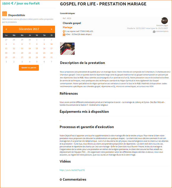 NB : Le processus et garantie exécution, une information indispensable de l’annonce, consiste à les étapes de la mise en œuvre de la prestation : les informations attendues et interactions avec le client, les étapes de la prestation, la fin de la prestation et les livrables. N’hésitez pas à vous inspirer de nos conseils et recommandations pour bien construire votre annonce.
