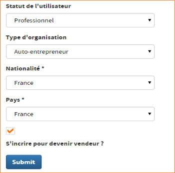- Sélectionner le statut utilisateur : ‘Professionnel’